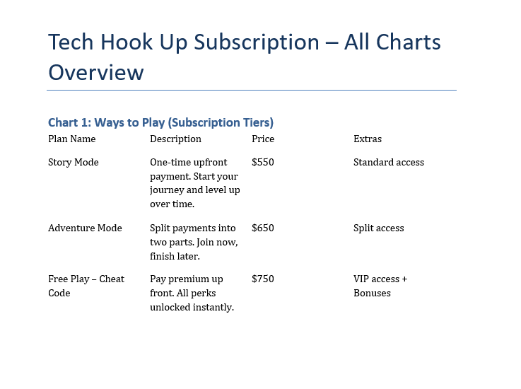 - **Story Mode ($550)**: Pay upfront. Access perks and grow yearly.