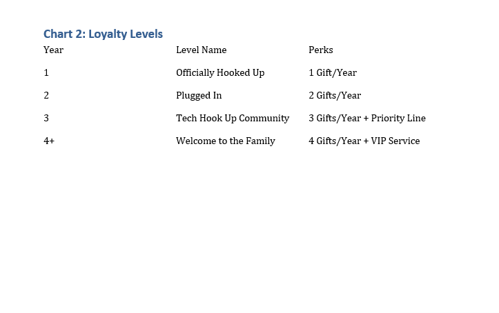 - Year 3: 'Tech Hook Up Community' = 3 gifts + priority line.